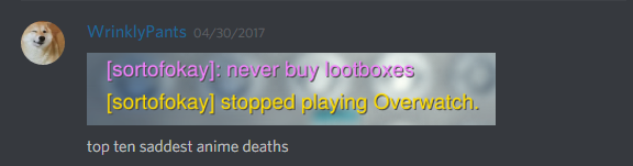 And Overwatch is special because it was my first online game. The kind of online game where you could pull up chat and talk to your teammates or the other team, and get called bad words by the whole arena.